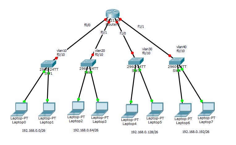 vlan10 192.168.0.0 ~ 63 255.255.255.192 /26