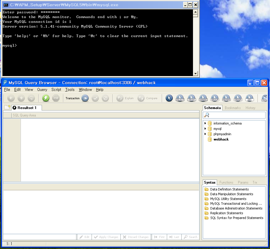 apmonitor에서 MySQL 콘솔로 들어가서 암호 입력 후 로그인