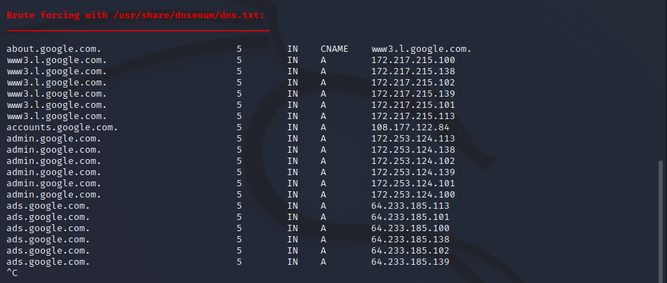 dnsenum dns이넘!을 골라 구글에 사용 호스트 서버 / 네임서버 / 메일서버 / 서브도메인까지