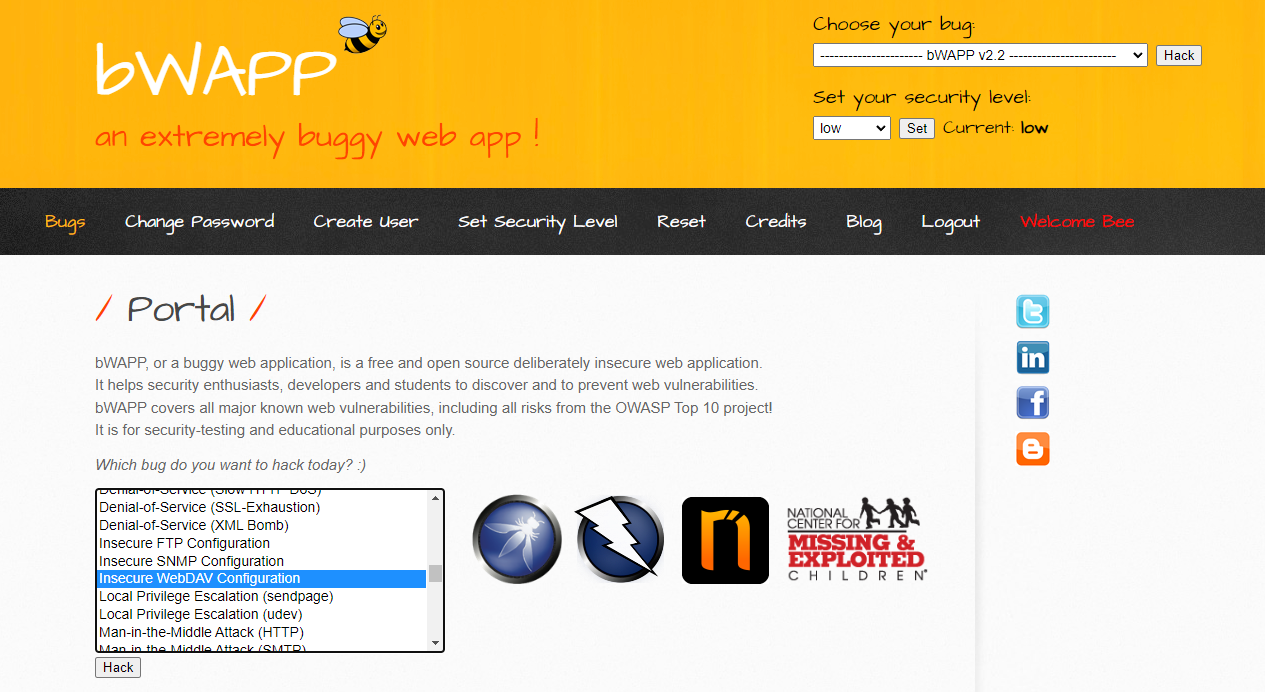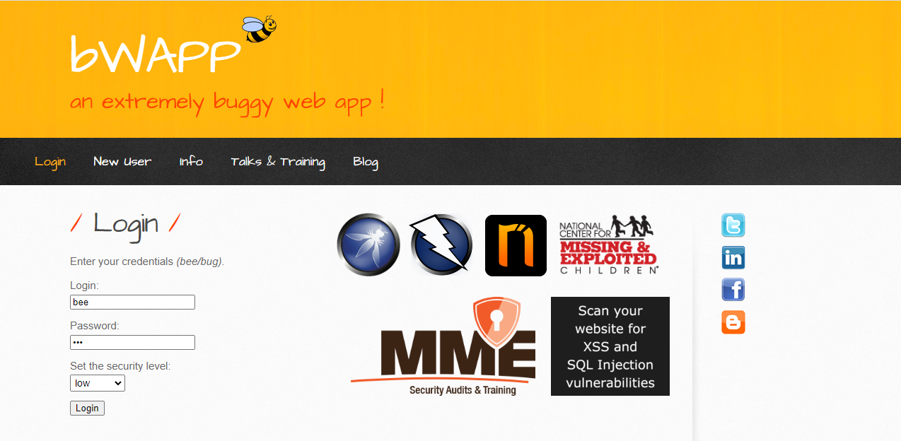 VM ware beebox v1.6 bWAPP에서 취약점 연습