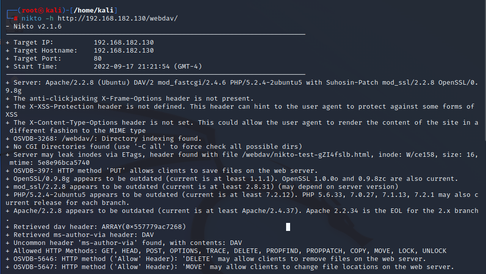 A5에서 Insecure WebDAV Configuration 취약점을 찾아서 들어간다.