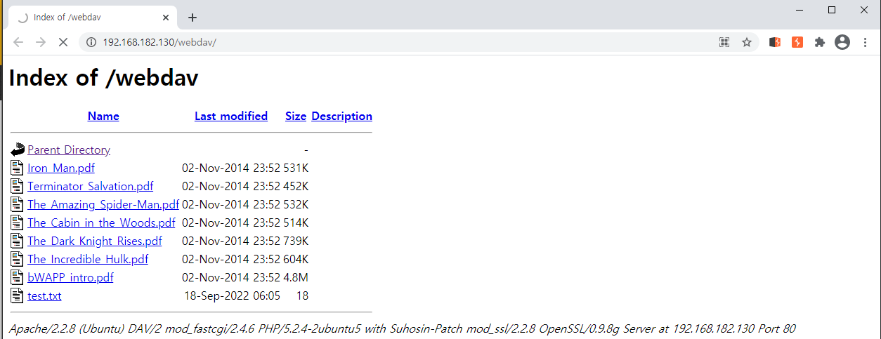 이를 PUT method로 수정하고 /webdav/test.txt 파일을 삽입한 뒤