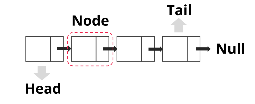 가장 뒤에 위치한 Node = Tail 이며 Tail은 가르킬 Node가 없으므로 Null을 가르킨다.